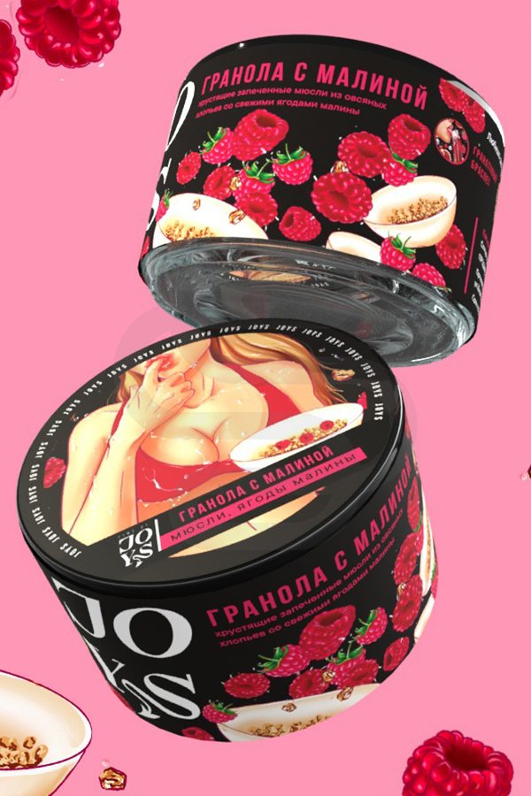 Бестабачная смесь JOYS «Гранола с малиной»– мягкий аромат хрустящих запеченных хлопьев и спелой малины с характерными сладковатыми нотками.