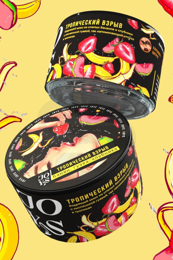 Бестабачная смесь JOYS «Тропический взрыв» – ароматный микс спелой гуавы, сладкого банана и сочной клубники с приятной кислинкой в послевкусии.