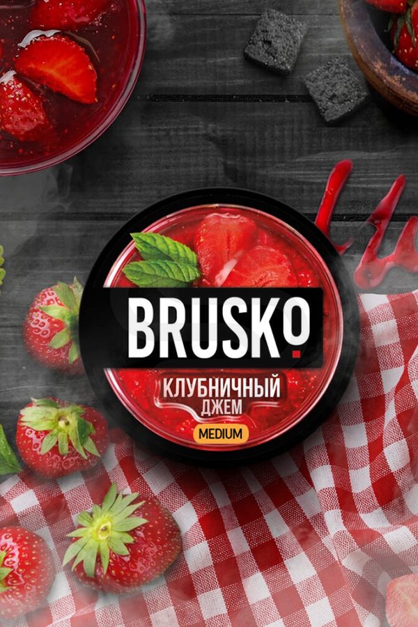 Бестабачная смесь BRUSKO Medium Клубничный джем – легкий аромат сладкого клубничного варенья.