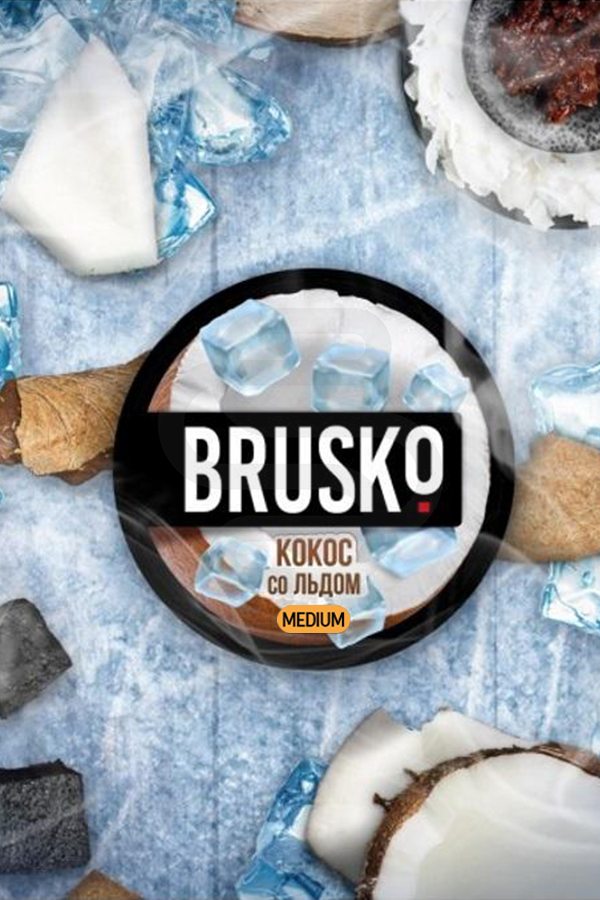 Бестабачная смесь BRUSKO Medium Кокос со льдом – приятный аромат спелого кокоса с выраженной сладостью и легкой свежестью на выдохе.