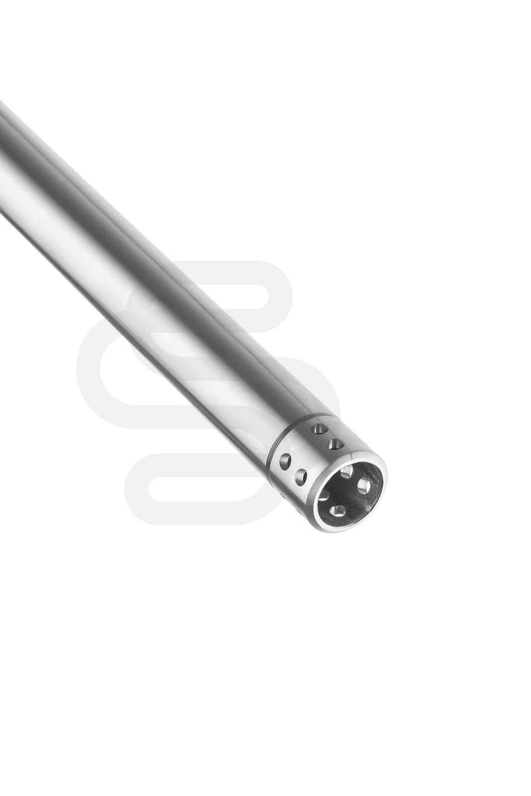 Шахта кальяна, блюдце и мундштук изготовлены из нержавеющей стали AISI 304, что, как известно, залог надежности и высокого качества девайса. Основание и декоративные элементы — немецкая полиацеталь. Данные материалы просты в уходе, достаточно промыть кальян после курения и он прослужит вам еще долгие годы.