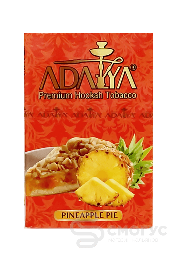Adalya Pineapple Pie (Ананасовый пирог) — сладкий вкус бисквитно-ванильной выпечки с кислинкой ананаса. Необычный вкус не оставит равнодушным кальянных экспериментаторов. Отлично подойдет в качестве дымного десерта после дружеского ужина.
