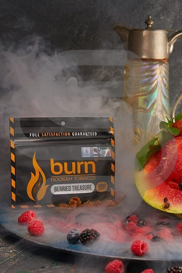 Berried Treasure (Арбуз с ягодами) – один из наиболее интересных кисло-сладких и терпких ароматов от Burn, многослойный табачный микс. Вкус сочного сахарного арбуза постепенно сменяется ягодным смузи (черника, малина, ежевика), и все ноты гармонично сочетаются друг с другом. Завершает волшебное пиршество цитрусовая симфония – апельсин и лайм оставляют приятную кислинку на языке. Berried Treasure идеально сочетается с мятными и кислыми муасселями.