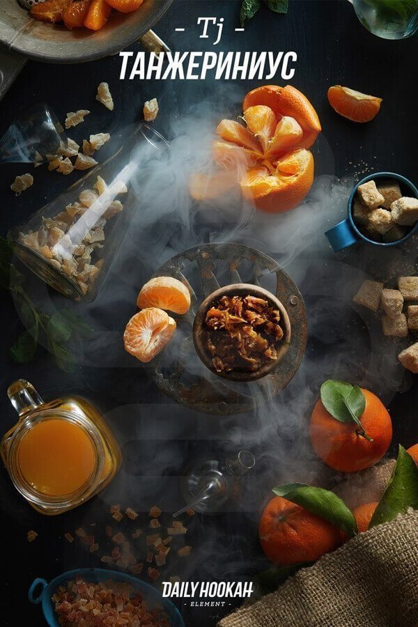 Tj Танжериниус (Мандарин) – один из наиболее насыщенных и топовых ароматов в обновленной линейке Daily Hookah, рассчитан на поклонников сладких цитрусов. Вкус новогоднего фрукта не резкий, лаконичный, но богатый и глубокий. При сильной концентрации напоминает «Фанту», а на  языке ощущается горчинка, присущая мандариновой или апельсиновой косточке и цедре. Tj Танжериниус хорошо ощущается и не тяготит однообразием в соло, а также может украсить все кальянные миксы с тропическими фруктами, шоколадом, черникой и лимоном.