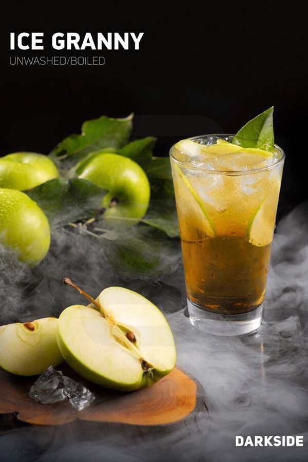 DarkSide Ice Granny Rare (Зеленое яблоко с ментолом) – свежий, но не обжигающий, сладкий, но не приторный вкус классического зеленого яблока Гренни Смит. При сильной концентрации напоминает леденец, на выдохе ощущается приятный и нежный холодок. Без примеси аниса. Ice Granny чудесно гармонирует с клюквой и черникой, бананом и вишней, апельсином и грушей, айвой и лаймом.