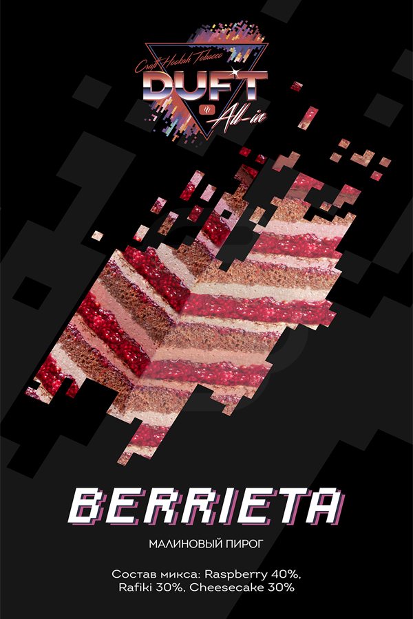 Duft All In Berrieta (Малиновый пирог) – нежный, сладковатый микс малины, чизкейка и экзотического фрукта.