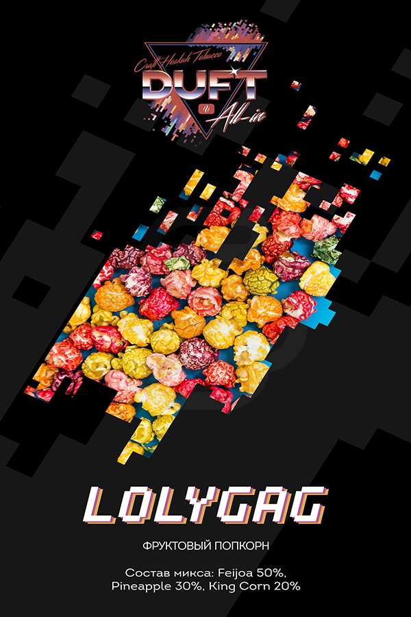 Duft All In Lolygag (Фруктовый попкорн) – хотела попробовать что-то необычное и очень вкусное? Устраивайтесь поудобней, включайте оскароносный фильм и забивайте чашечку сладкого, фруктового поп-корна. Гарантируем, время пролетит в два счета!