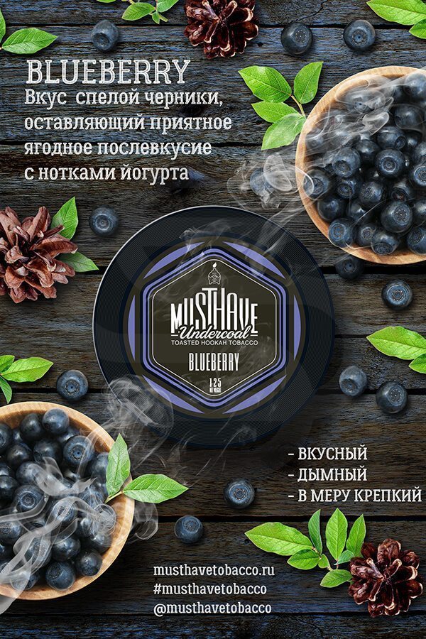 Must Have Blueberry (Черника) – нежный, сочный, топовый аромат и один из хитов продаж этой марки. Хорошо сбалансированный вкус свежей лесной ягоды. Вместе с тем сладкая черничная вариация от Must Have напоминает йогурт: на выдохе в табаке ярко проявляется сливочная нотка. Табак не насыщенный, достаточно спокойный и хорошо воспринимается в сольном варианте. А для сохранения приятного ягодного послевкусия, в миксах Blueberry почти всегда должен преобладать. Черника наиболее удачно сочетается с малиной и черной смородиной, мятой и виноградом, клубникой и персиком, грейпфрутом и лимоном, дыней и арбузом, а также с кукурузными палочками.