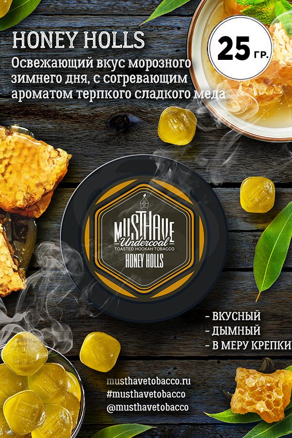 Must Have Honey Holls (Медовые леденцы) – приятная свежесть и легкие медовые оттенки — это главные характеристики этого вкуса. Да-да, это те самые леденцы Holls, которые с детства многие любили. Насыщенная медовая сладость замиксована с освежающим ментолом. Вкус круто сочетается с десертными и коктейльными табаками.