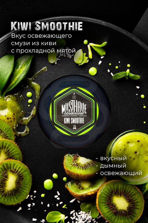 Must Have — Kiwi Smoothie (Киви Смузи) – Это вкус освежающего фруктового смузи с ярким киви и прохладной мятой, который переносит в атмосферу летней свежести, сочных фруктов и лёгкого тропического настроения!