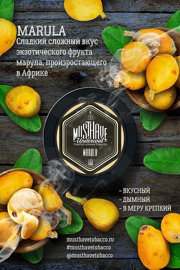 Must Have Marula (Марула) – Один из самых экзотических вкусов, непохожий ни на какой другой! Марула — необычный фрукт прямиком из жаркой Африки. Очень сладкий, немного приторный, но безумно вкусный. Если вы давно хотели удивить себя и своих друзей , то этот табак обязателен к пробе. Очень интересно раскрывается в миксах с цитрусами и молочными вкусами.