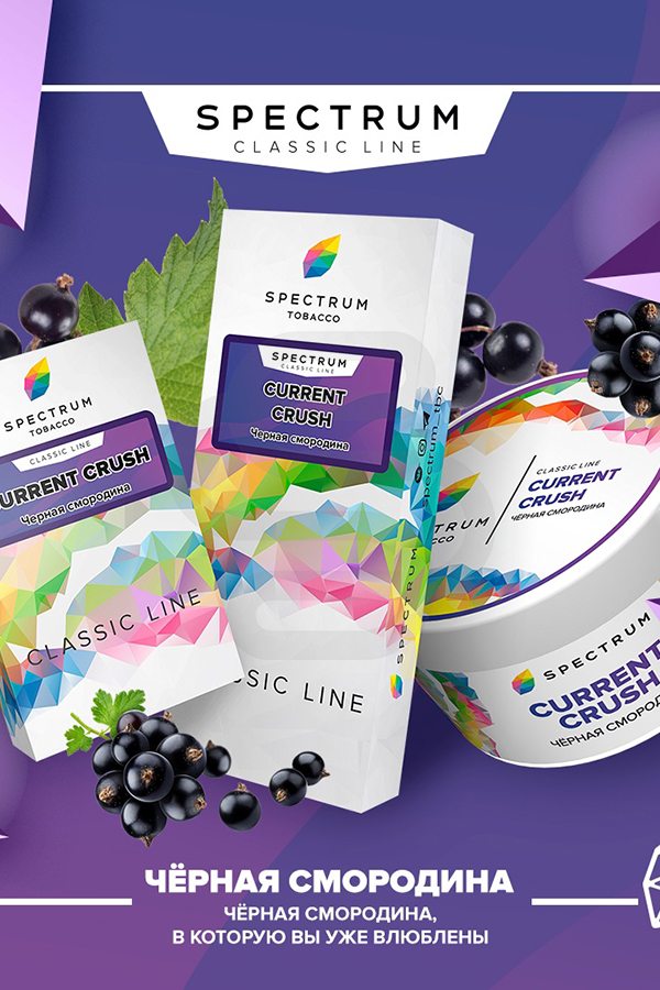 Spectrum Current Crush (Черная смородина) — интересный и многогранный вкус спелой черной смородины с бабушкиной дачи. На самом деле, найти по-настоящему вкусную и натуральную смородину в табаках — большая удача. И вот, она перед вами! Скорее хватайте ее и забивайте чашку ароматно и дымного табака.