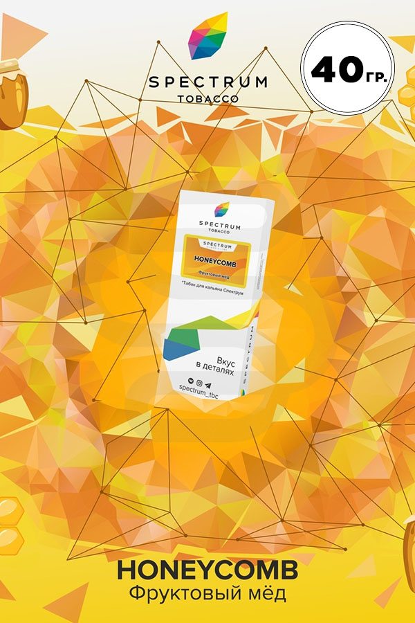 Spectrum Honeycomb (Мед) — насыщенный вкус фруктового меда. Ароматный, сладчайший мед высшей пробы безупречно сочетается с кисленькими фруктами. Приятный аромат понравится многим, сладкоежки останутся просто в восторге. Мед интересно миксуется с десертными и ягодными табаками.
