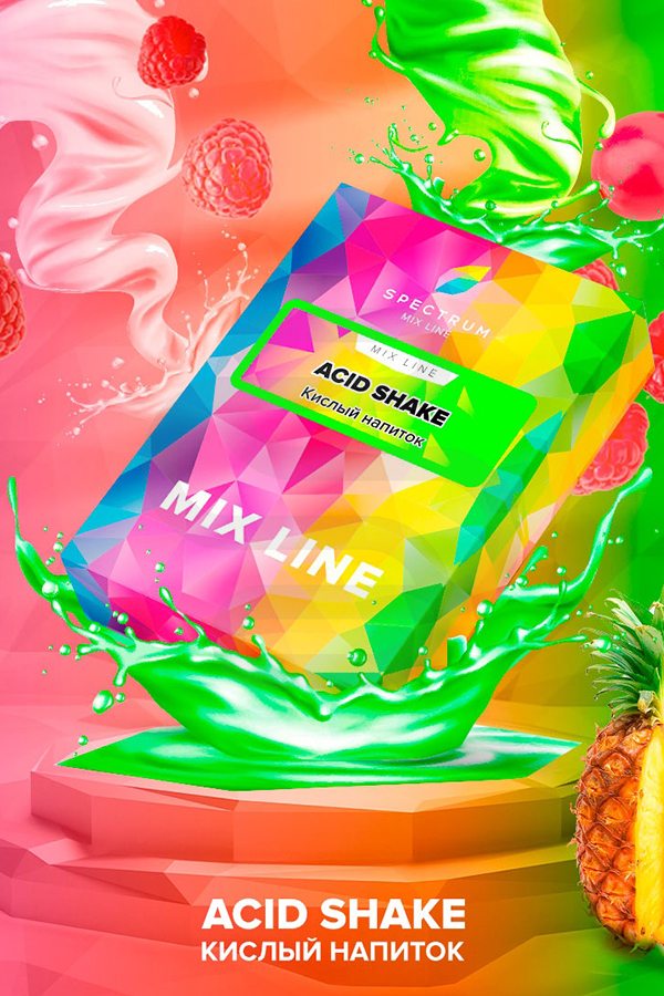 Spectrum Mix Line Acid Shake (Кислый напиток) — яркий аромат освежающего, кисленького коктейля. Спелые ягоды клюквы, сладкая малина и насыщенные нотки солнечных цитрусов добавят новых красок в ваши будни. Такой взрывной микс может создать только профессиональный бармен или очень умелый кальянщик!