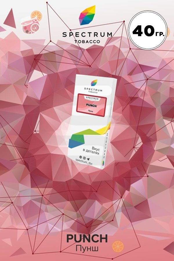 Spectrum Punch (Пунш) — многогранный вкус американского напитка — пунша. Насыщенная сладость, при этом достаточно свежая, без приторности, отлично сочетается с легкими нотками кисленьких яблок. Ароматика вполне полноценна, чтобы забить этот табак соло, а также использовать его в миксах.