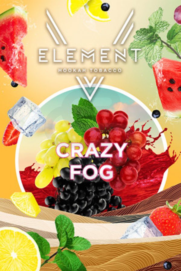 V Element Crazy Fog (Арбуз, клубника, бузина) – легкий летний коктейль сочного арбуза, микса сладкого красного и зеленого винограда, кисленького лимона, домашней клубники и освежающих ноток свежей бузины. Буйство красок и оттенков вам гарантированы с первого же вдоха! Вкус постепенно раскрывается в процессе курения и держится до самого конца.
